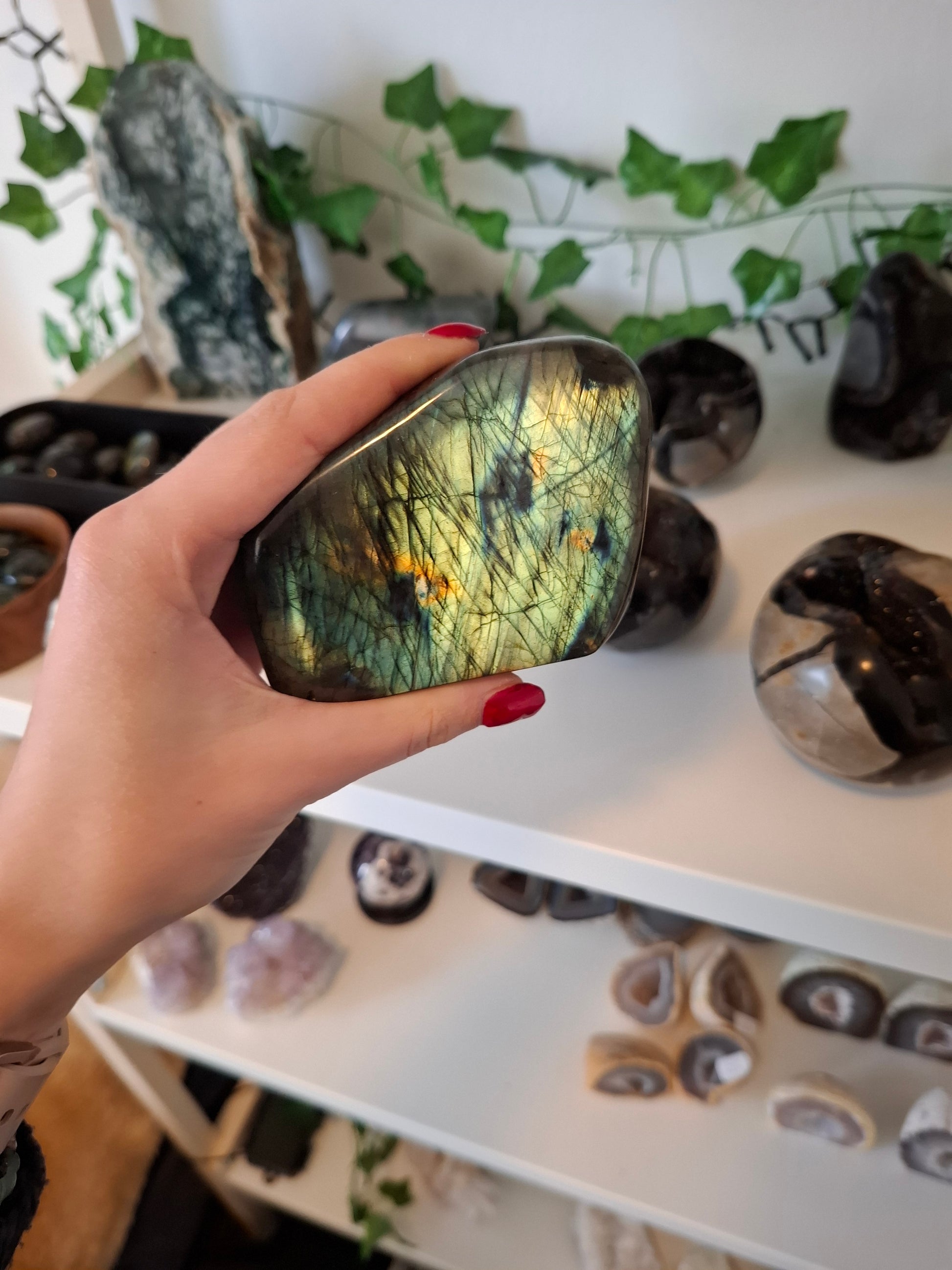 Onzettend mooie labradoriet met groen en blauwe kleuren