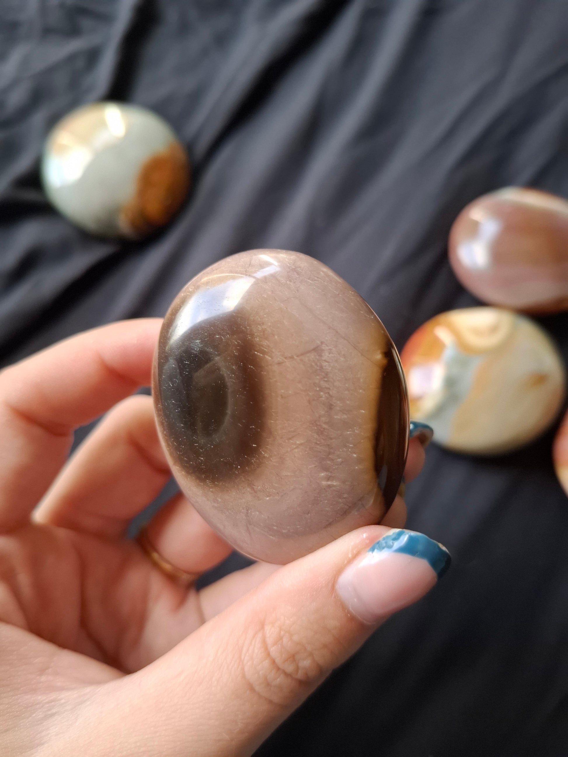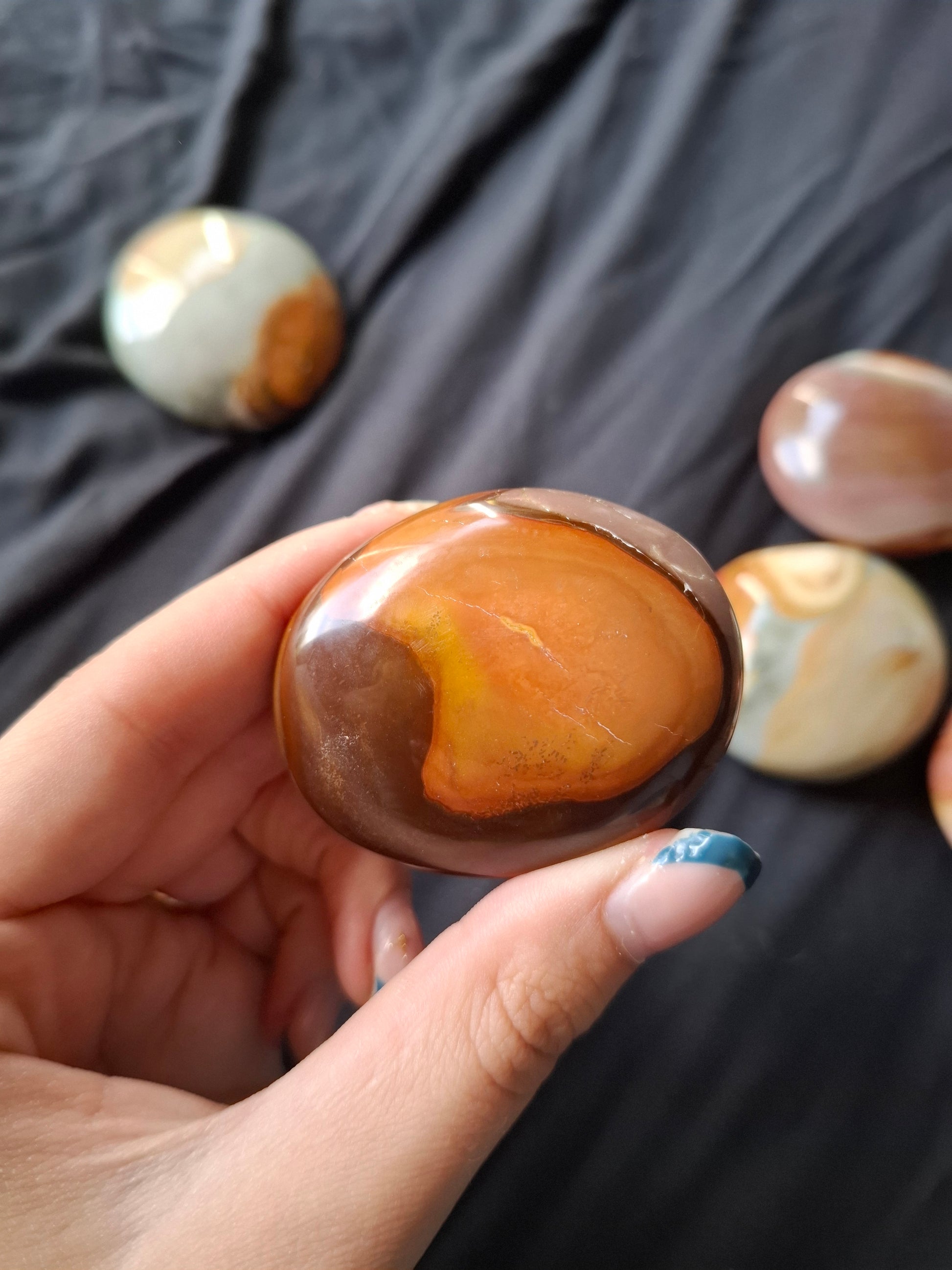 Polychroom jaspis, ook wel woestijnjaspis genoemd, is een kleurrijke edelsteen met warme tinten zoals rood, oranje, beige en blauwgrijs. Elke handsteen is uniek door de bijzondere patronen en kleurschakeringen. Deze steen staat bekend om zijn aardende en beschermende energie, brengt balans en versterkt vitaliteit. Ideaal om bij je te dragen of in je ruimte neer te leggen als krachtig decoratief stuk