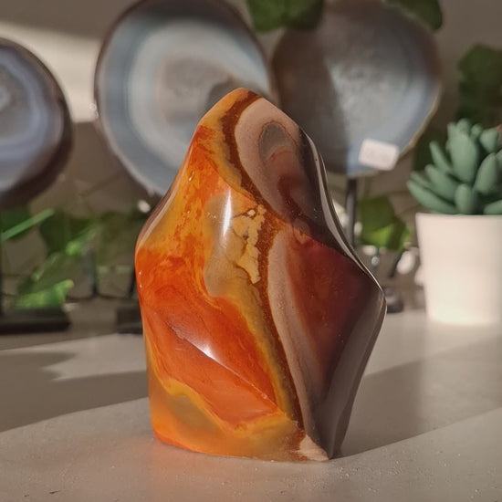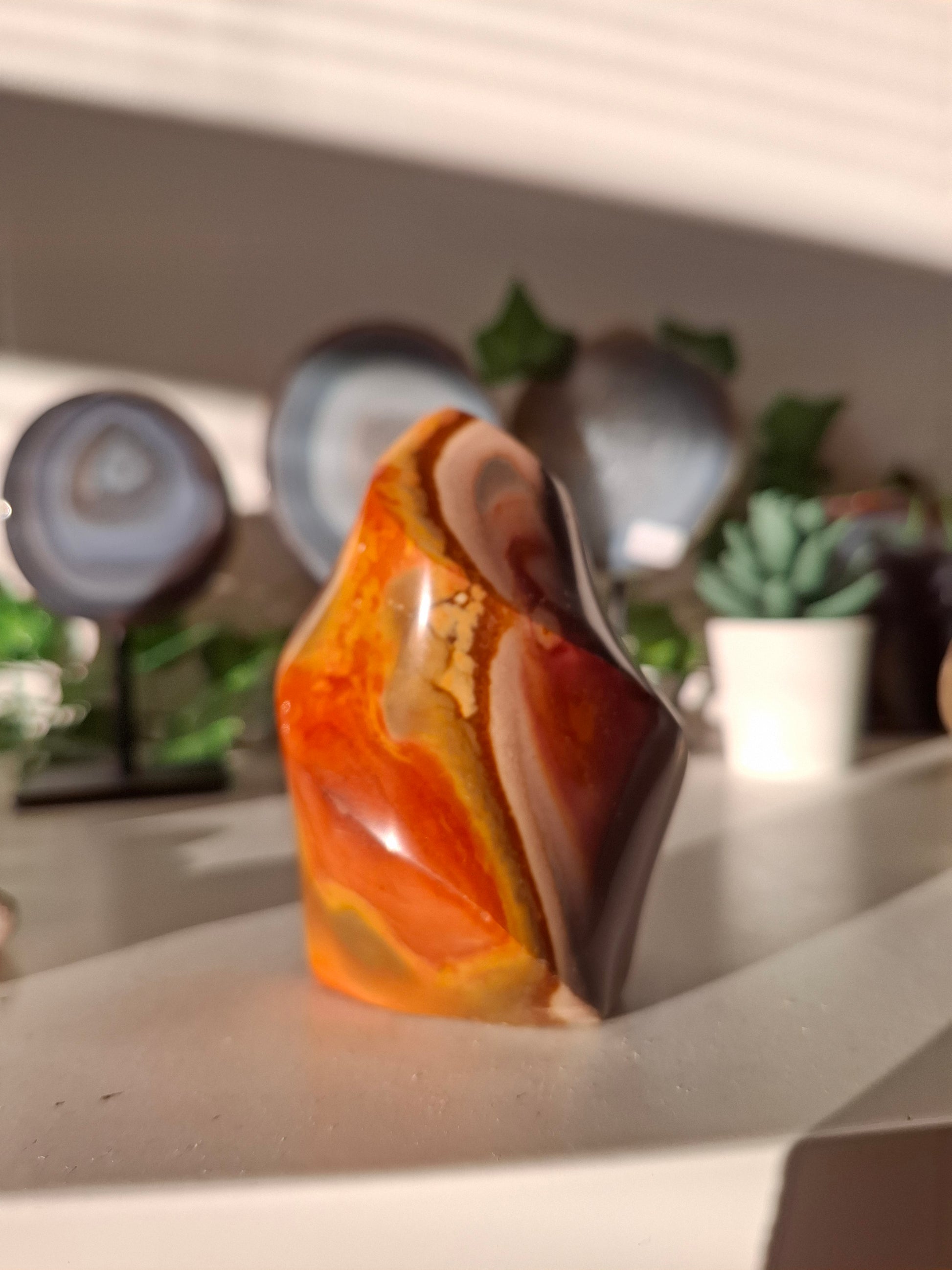 Hele mooie polychroom jaspis vlam met een prachtige kleuren van orange